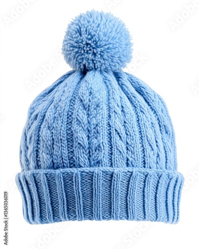 Light Blue Knitted Wool Hat with Pom Pom for Winter Season