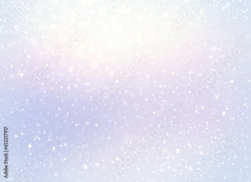 Light blue lilac color airy pearlescent winter sky decorated falling snow.