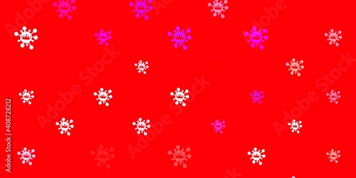 Light blue, red vector background with covid-19 symbols.