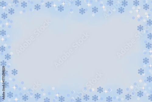 Light Blue Snowflake Frame Background. Soft light blue background decorated with delicate white snowflakes around the border, perfect for winter or Christmas design templates.