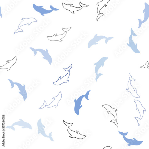 Light BLUE vector seamless texture with dolphins.