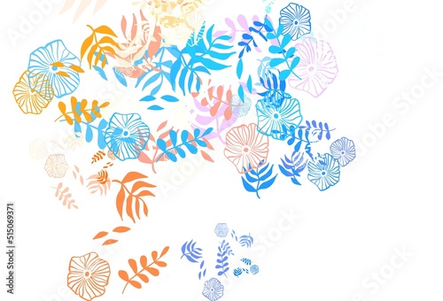 Light Blue, Yellow vector doodle layout with leaves, flowers.