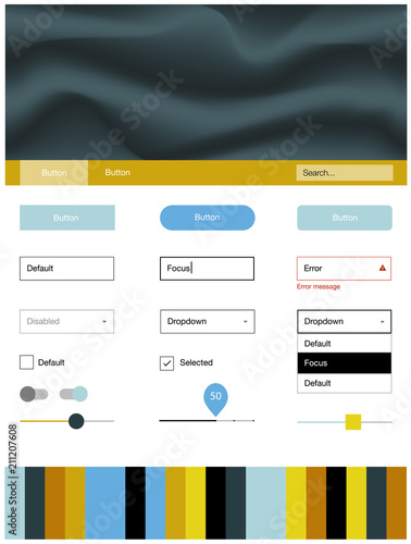Light Blue, Yellow vector Material Design Kit with liquid shapes.