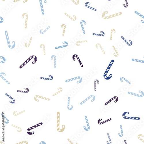 Light Blue, Yellow vector seamless template with sweet christmas sticks.