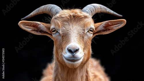 Light Brown Goat Portrait, Studio Shot, Black Background