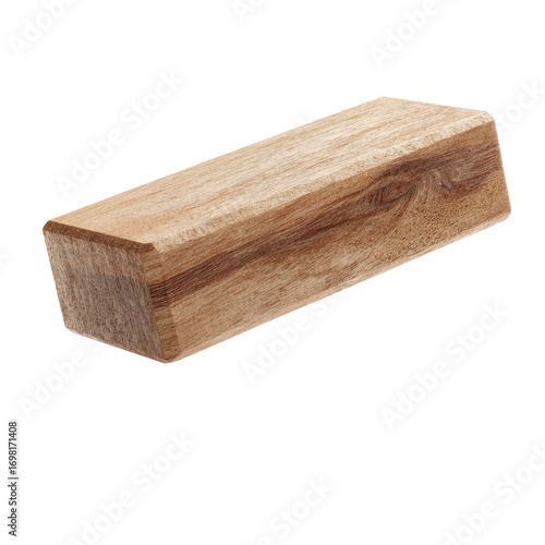 Light brown rectangular wooden block, smooth surface, slightly angled view