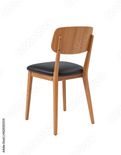 Light brown wooden chair with black seat