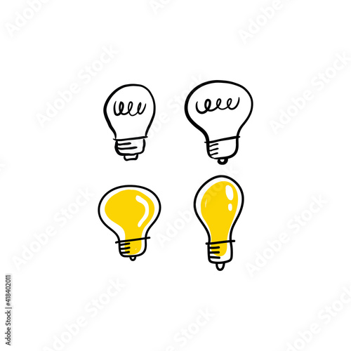 Light bulb doodle collection. Set of hand drawn electric lamp. Symbol of idea, innovation and solution.