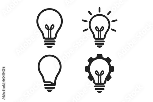 Light Bulb Icon Collection for Ideas and Innovation – Creativity, Solution, Inspiration, Brainstorming, Concept Design, Minimal Black Modern Vector Set