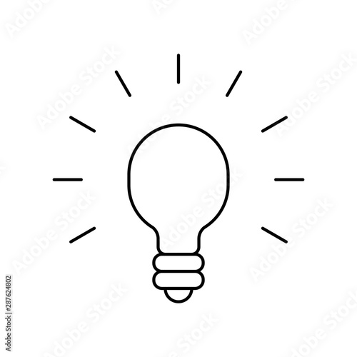 Light bulb linear icon. Symbol of creativity and solution. Bright lamp shinning pictogram.
