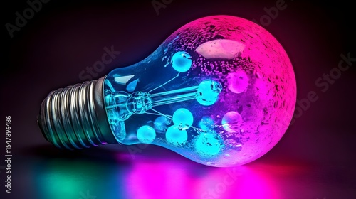 Light bulb, Neon, Glowing, Neon Light Bulb with Glowing Particles