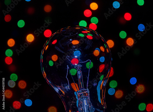 Light bulb on multicolored lights background, I have an idea !!