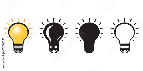 Light Bulb Or Idea Icon Vector Collection. Lighting Electric Lamp, Led Lights. Line Art Lamp Sign Silhouette. Isolated On Transparent Background.