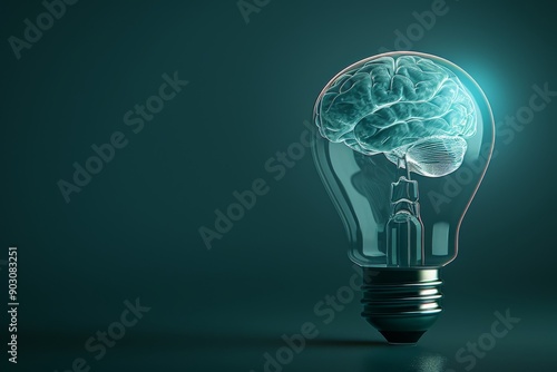 Light bulb with brain filament on a wooden surface showcasing advanced technology and creative innovation.