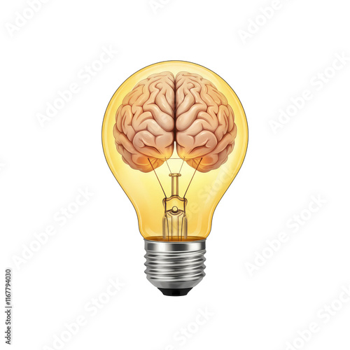light bulb with brain isolated on transparent background, creative idea concept, cut out