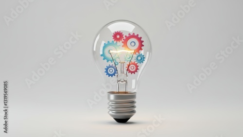 Light bulb with colorful gears symbolizing innovation and creativity in technology and design