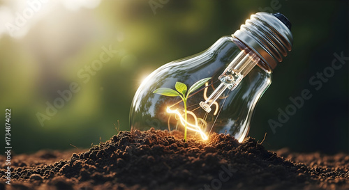 Light Bulb with Growing Plant: Symbolic Image of Renewable Energy and Sustainable Growth, Environmental Concepts