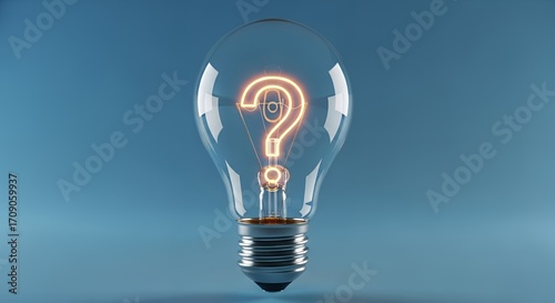 Light Bulb with Neon Question Mark Inside on Blue Background