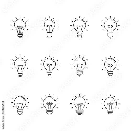 Light bulbs. Bulb icon set. Lamp line icon on white background. Vector illustration. light bulbs set. light bulb