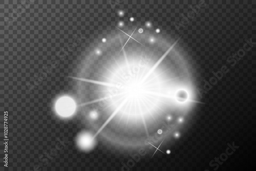 Light effect, Isolated white transparent flare explosion sparkle dust line solar flare spark star spotlight, vector special effect