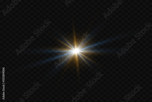 Light effect of star and flash, glare of rays and light. On a transparent background.