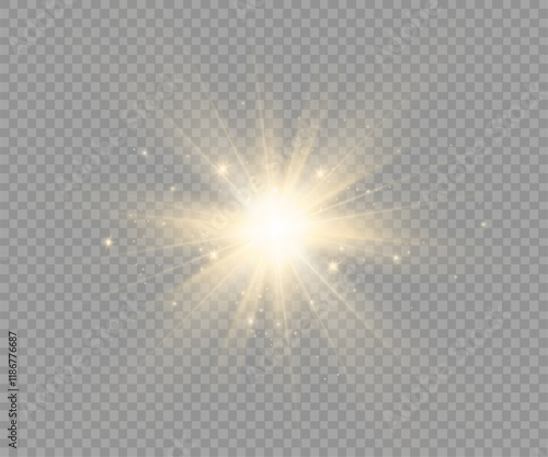 Light effects, glare, glitter, explosion, golden light, Vector illustration. shining golden stars.