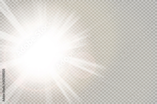 Light effects on a transparent background. Shine gradient glitter, bright flare. Sun texture. Vector illustration.