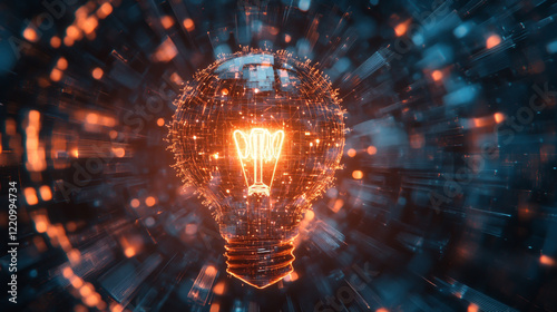 light emanates from a creative light bulb, symbolizing birth of new ideas and concept of brainstorming in an abstract technology background cinematic view.