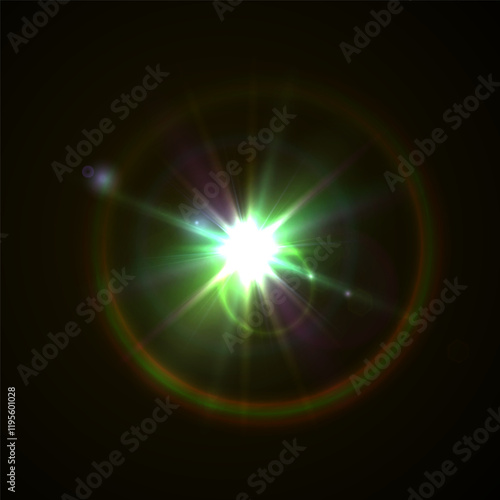 Light flare, shine flash sparkle or star glow ray or beam, realistic vector sunlight. Light glare with blur or bokeh flare effect background, shiny spark or bright starlight with lens flare effect
