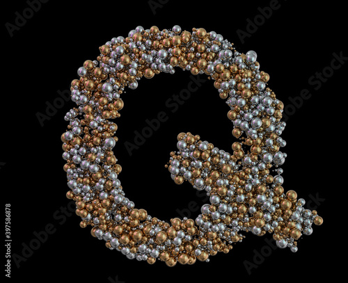 Light gold letter Q on the background. 3D