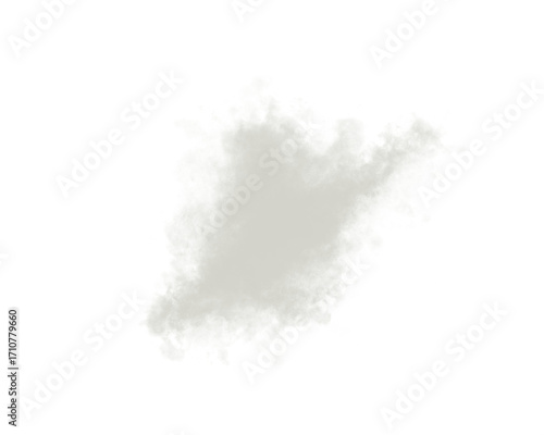 Light gray smoke cloud texture isolated on white background. Soft fog effect ideal for overlays, digital art, and atmospheric graphic design projects. Abstract mist illustration.