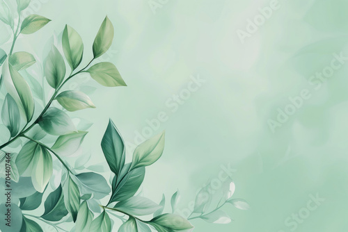 Light green background with delicate light leaves designs, hand drawn, soft tones, space for text