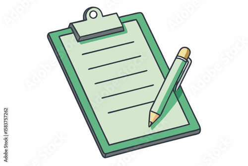 light green clipboard with paper and pen illustration design and isolated on white background.