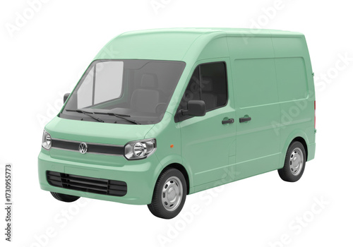 Light green delivery van isolated, commercial vehicle for transportation and logistics on transparent background