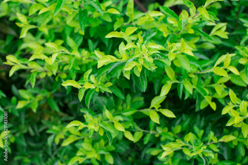 Light green foliage of a healthy plant with serrated leaves and blurred background. Horizontal shot.