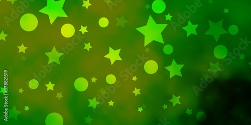 Light Green, Yellow vector background with circles, stars. Abstract design in gradient style with bubbles, stars. Pattern for design of fabric, wallpapers.