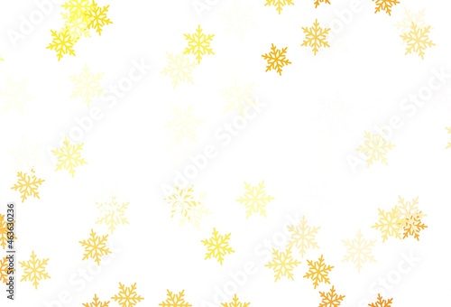 Light Orange vector layout with bright snowflakes, stars.
