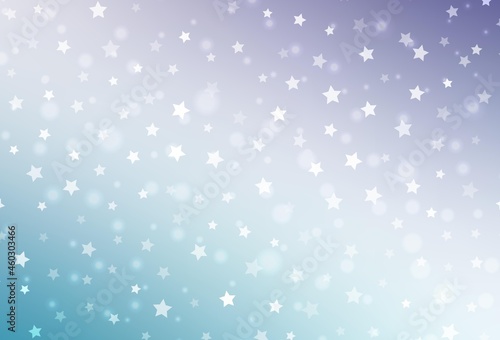 Light Pink, Blue vector texture with colored snowflakes, stars.