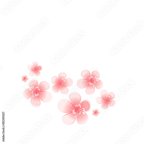 Light Pink flowers isolated on White background. Apple-tree flowers. Cherry blossom. Vector