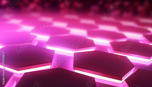 Light pink hexagons with bright lighting edges. Banner template geometric abstract background.