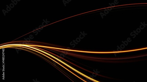 Light Trails: a flowing composition of light trails against a stark black backdrop, evokes a sense of motion, energy, and technological innovation.