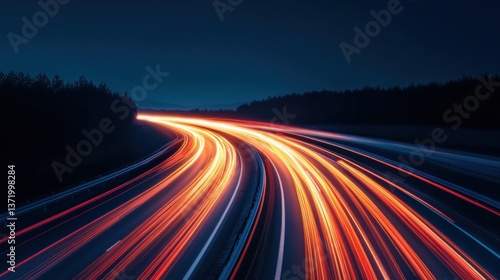 Light trails on highway at night