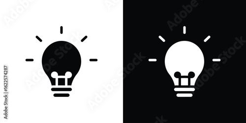 Lightbulb icon silhouette collection in black and white flat solid versions for graphic designs