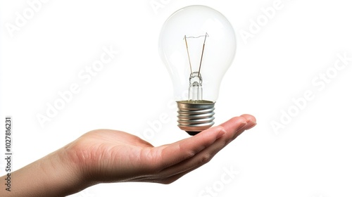 Lightbulb in hand with a clean white background, representing inspiration, ample room for adding your message
