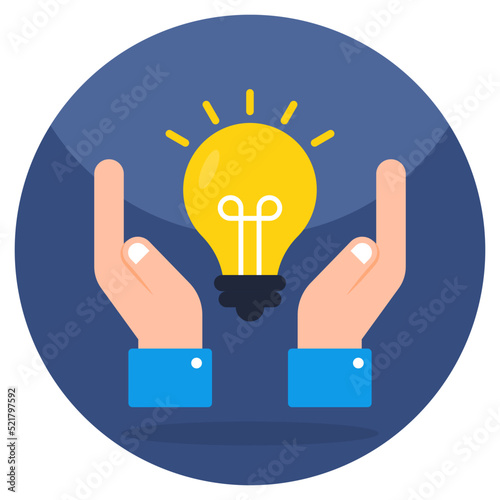 Lightbulb inside hands, icon of idea care