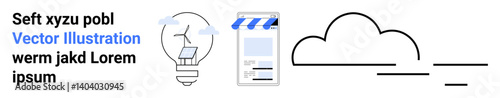 Lightbulb represents idea generation, mobile storefront suggests e-commerce or apps, and cloud reflects online storage or services. Ideal for technology, business, innovation, startup, software