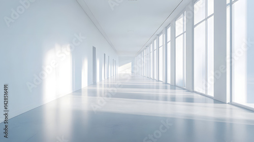 Light-filled hallway interior design contemporary space photography minimalist environment horizontal view