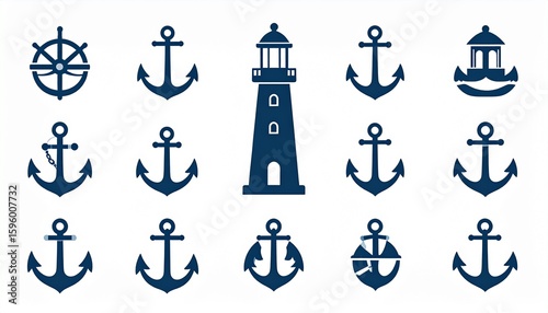 Lighthouse, Buoy, and Anchor Icons