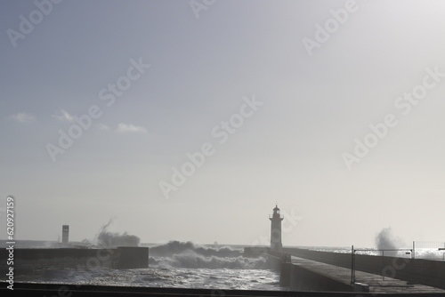 Lighthouse by the shore of Porto, Portugal