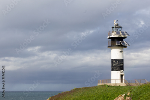 Lighthouse coastal scenic photography. Seaside landmark architecture. Ocean landscape background.